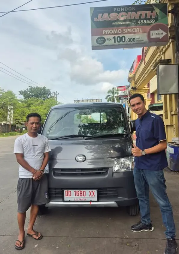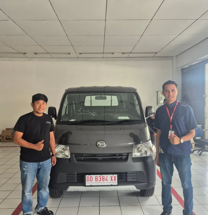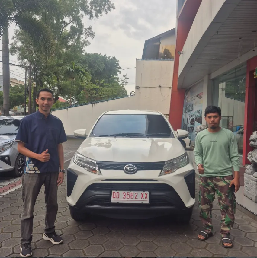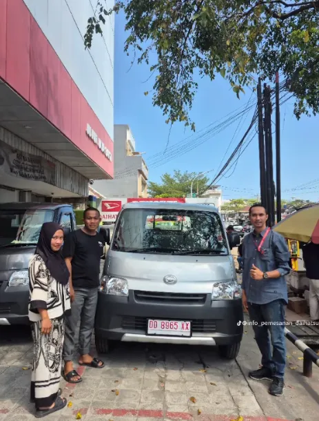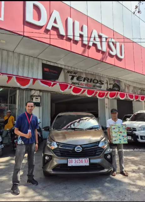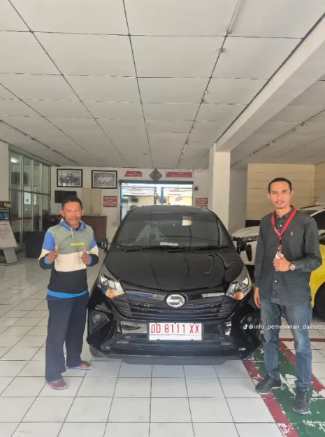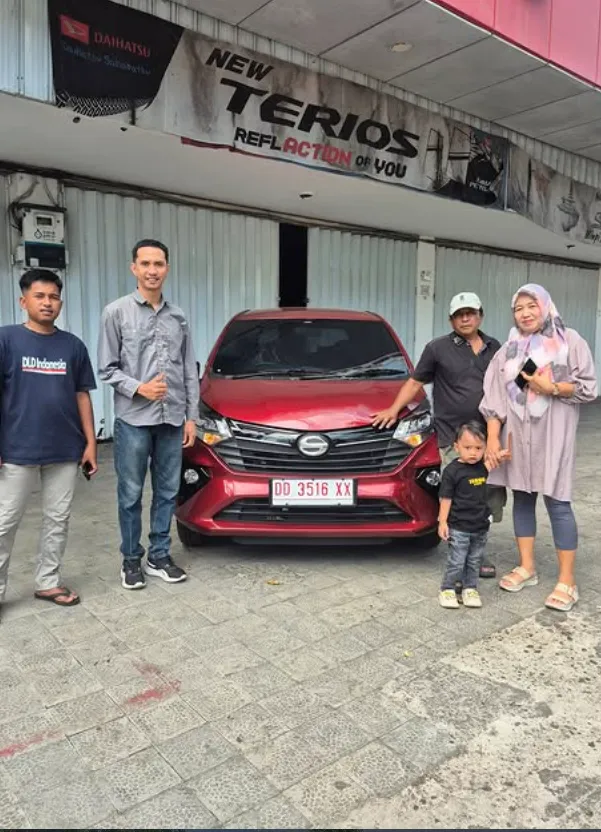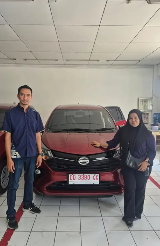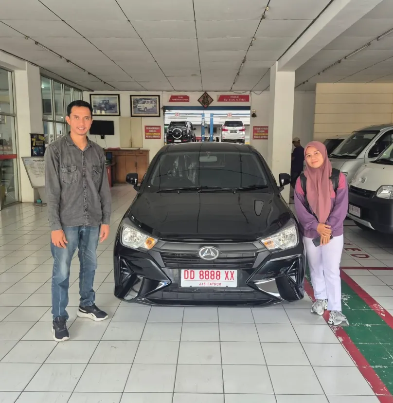 Momen bahagia pelanggan kami saat menerima kunci mobil Daihatsu impian mereka. Bukti nyata pelayanan cepat dan tepercaya dari Dealer Jujur Jaya Sakti Makassar.